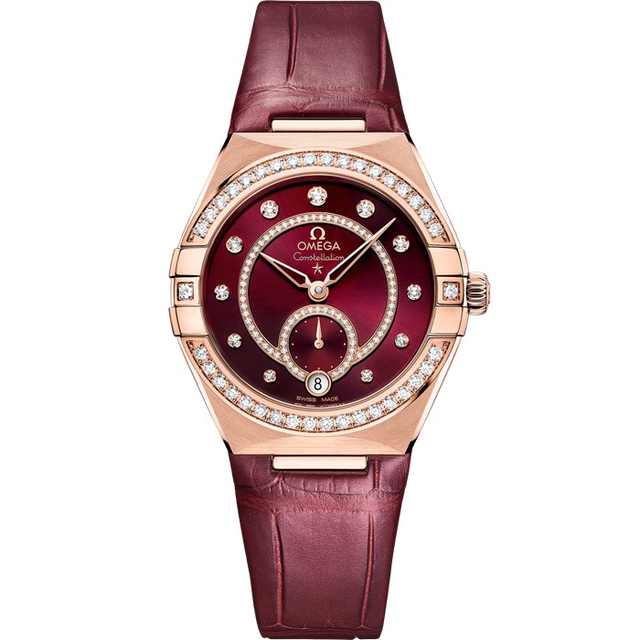 This 34 mm model in 18K Sedna™ gold features a diamond-paved bezel, sun-brushed burgundy dial and a round date window at the 6 o’clock position. The incremental diamond hour markers are presented in 18K Sedna™ gold holders, while the Small Seconds subdial and Central Minute Track rings are also crafted in 18K Sedna™ gold and set with diamonds.
