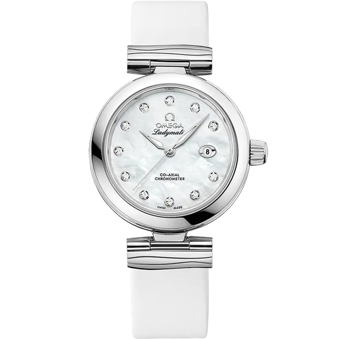 The attractive dial is made with white mother-of-pearl, to accentuate the feminine touch.