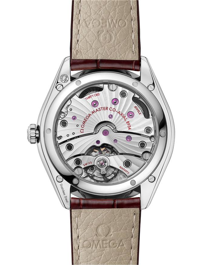 Presented on a burgundy leather strap, this model has a polished 40 mm stainless steel case and a bezel paved with 72 full-cut diamonds. The domed burgundy dial includes a Power Reserve display at 12H, a Small Seconds display at 6H, along with hands and domed indexes in 18K white gold.