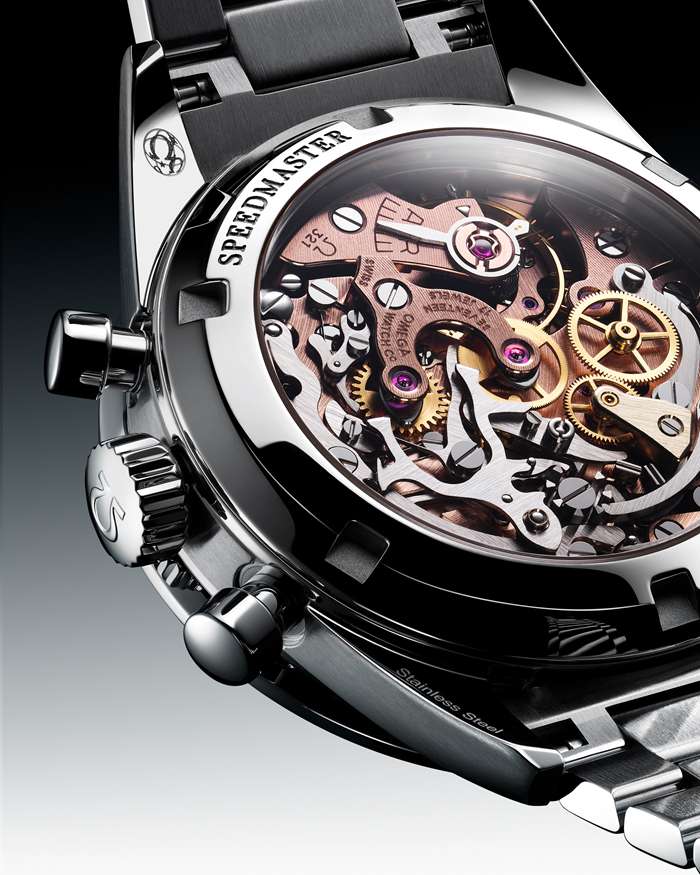 The 39.70 mm case is in stainless steel and is inspired by the same 3rd generation style worn during America’s first spacewalk in 1965. There is also a bezel ring in polished black ceramic [ZrO2] with the tachymeter scale in white enamel.