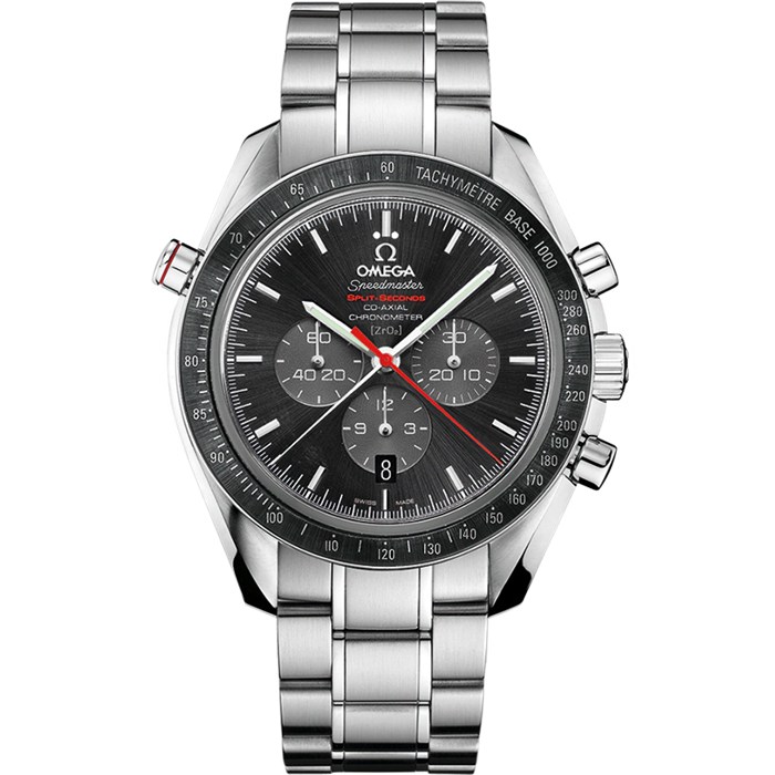 This model is a Limited Edition of 357 pieces and features a black ceramic dial covered by a scratch-resistant sapphire crystal and graced by a small seconds sub-dial, 30-minute recorder and 12-hour recorder along with central chronograph and split-seconds hands. There is a date window at the 6 o’clock position.