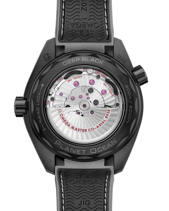 The outer section of the dial is produced in a DLC black colour with a laser-ablated and polished honeycomb pattern. It includes diamond-brushed indexes filled with grey Super-LumiNova, and an outer ring in grey varnish. A variety of global destinations circles the dial and its outer ring, including OMEGA’s home city of Bienne, while the grey PVD coated hands also include grey Super-LumiNova.