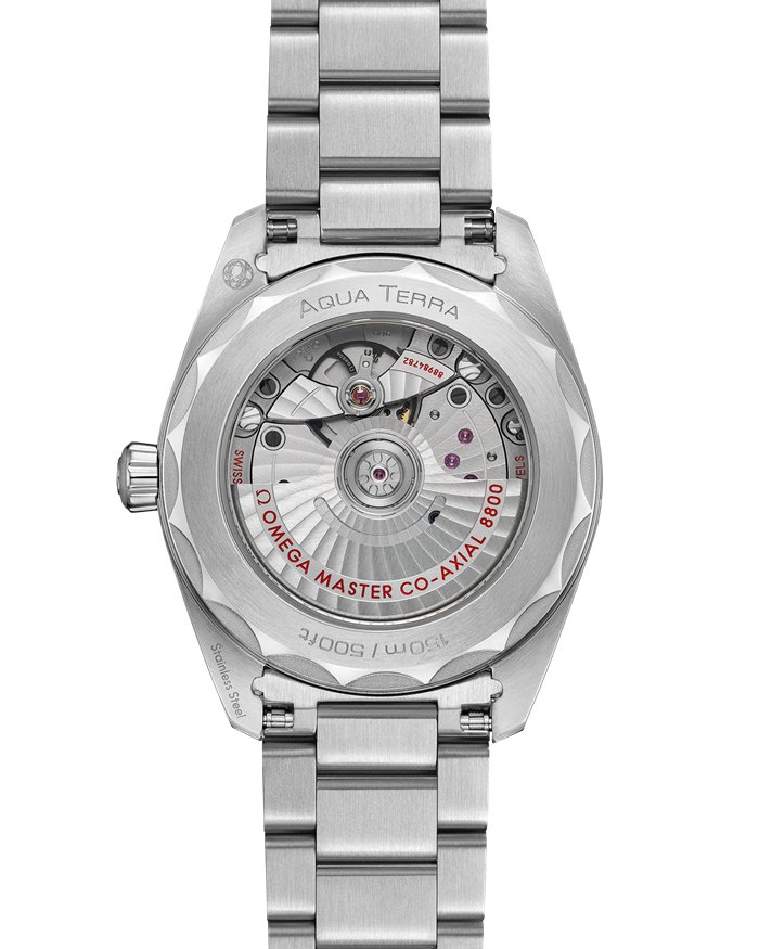 The Seamaster Aqua Terra is a superb tribute to OMEGA’s rich maritime heritage. In this 38mm model, the symmetrical case has been crafted from stainless steel, with a wave-edged design featured on the back.