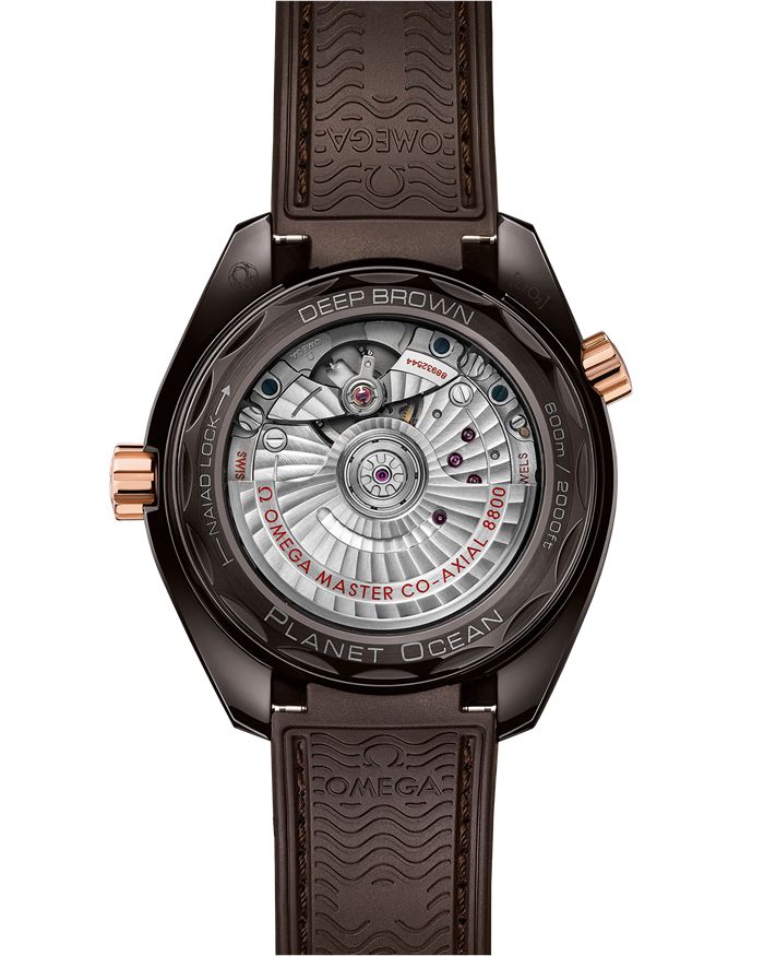 This 39.5 mm model features a sleek brown ceramic case and bezel with OMEGA Ceragold™ technology used to create the diving scale. The dial is also brown ceramic dial with 18K Sedna™ gold numerals, indexes and hands, as well as a date window at 3 o’clock.